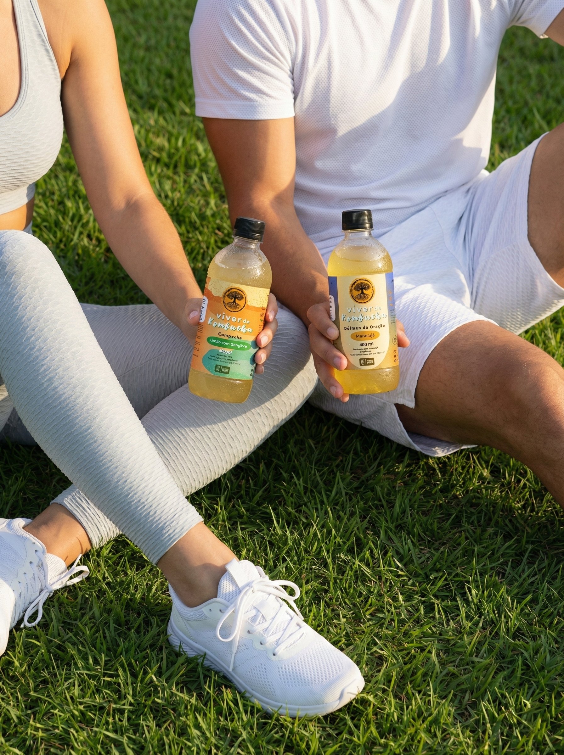 Quando o intestino funciona bem, todo o resto acompanha. A kombucha é um fermentado vivo que ajuda a equilibrar a microbiota intestinal, favorecendo bactérias boas e criando um ambiente mais saudável para a digestão e absorção de nutrientes.